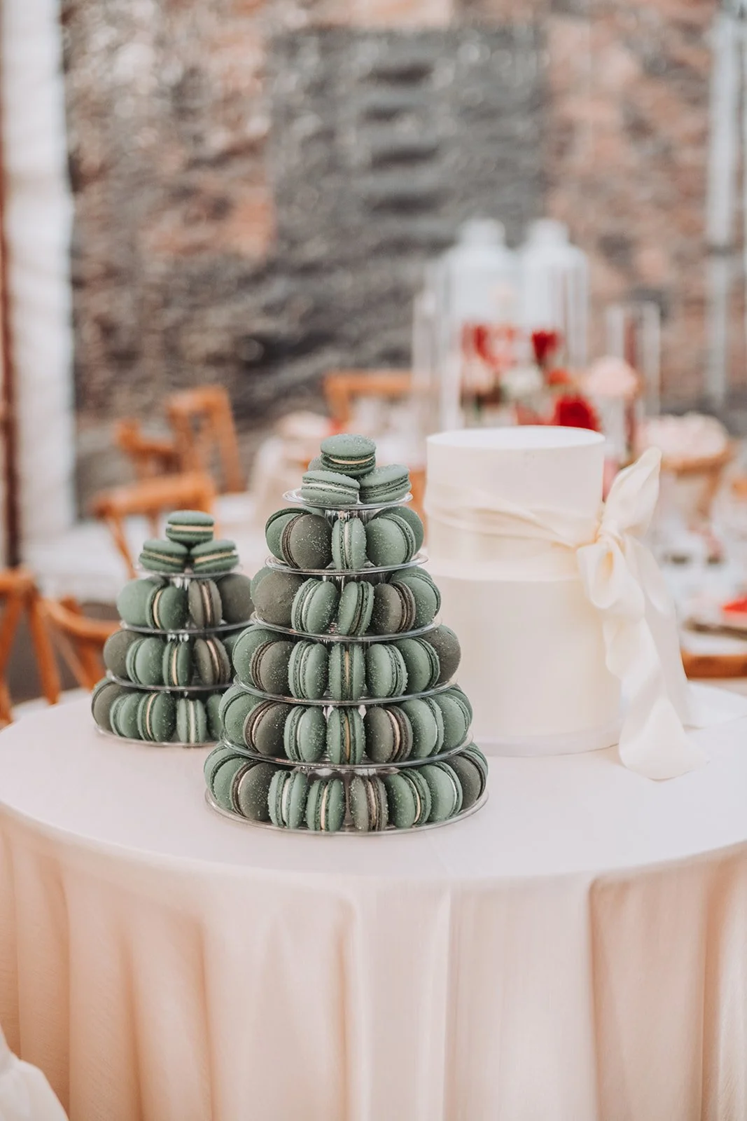 We always want to respect budget! To help spread your budget further we would always recommend a “centerpiece” cake with additional servings for your guests. This can be our Kitchen Cakes (sheet cakes), macarons, or a dessert table spread.